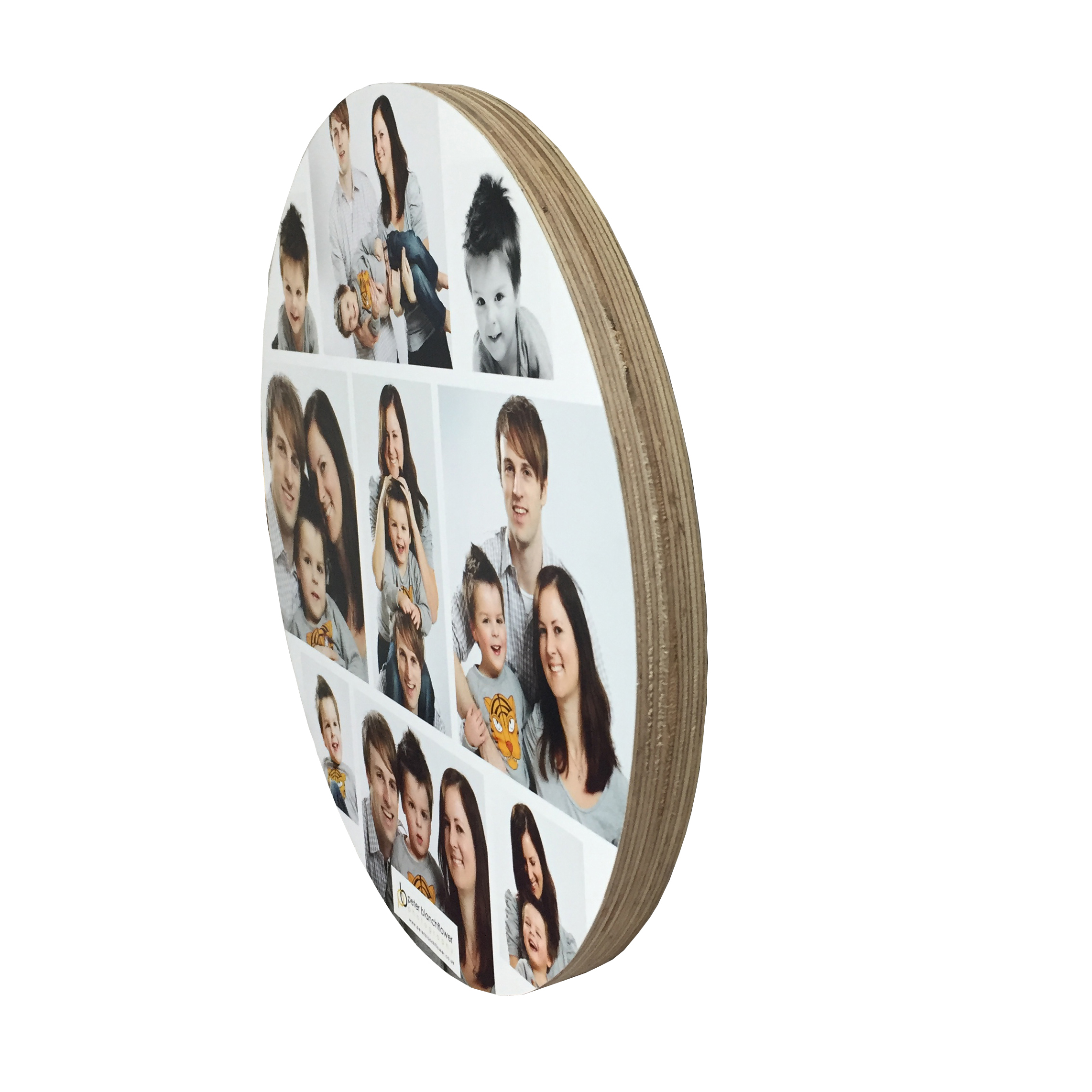 A range of Circular Shaped Image Blocks with a Birch Ply finish supplied ready to hang!